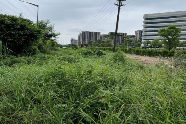 随后,新雅街纪工委工作人员立即前往现场走访调研。经现场查看,发现医院东侧没有配套非机动车道及人行道,东侧地块空置,部分区域用于堆放建筑垃圾,区域内的排水渠为土渠,渠内杂草丛生、落叶堆积、蚊虫滋生……